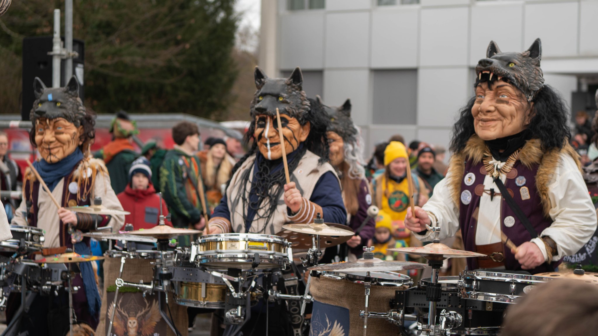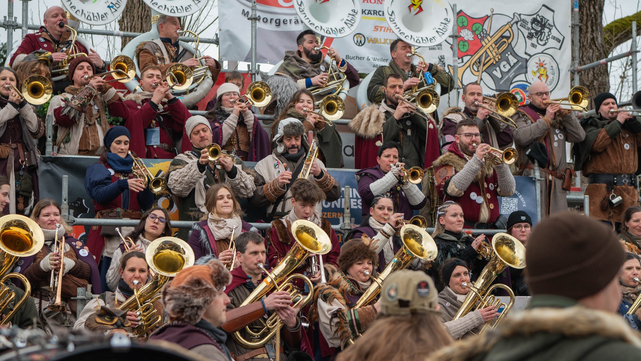 Ausgelassene Stimmung, farbenfrohe Kostüme und kakophone Klänge. Galerie zeigt den SchmuDo in Ebikon.